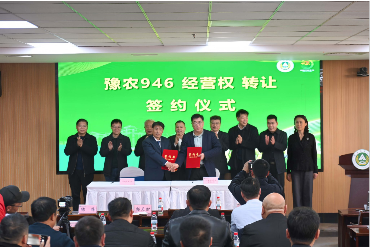本网讯(通讯员 唐建卫 董纯豪 摄影 段梦悦)2025年12月6日,学校在龙子湖校区举办小麦高产技术培训会议暨小麦新品种豫农946、豫农923经营权转让签约仪式。农学院殷贵鸿教授负责小麦种质创制与新品种培育科技创新团队培育的小麦新品种豫农946和豫农923分别以