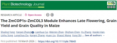 近日, Plant Biotechnology Journal 在线发表了由 河南农业大学杨建平课题组及其合作团队撰写的 The ZmCOP1sZmCOL3 Module Enhances Late Flowering, Grain Yield and Grain Quality in Maize 论文。该研究鉴定玉米中拟南芥 COP1 基因的两个同源基因 ZmCOP1a