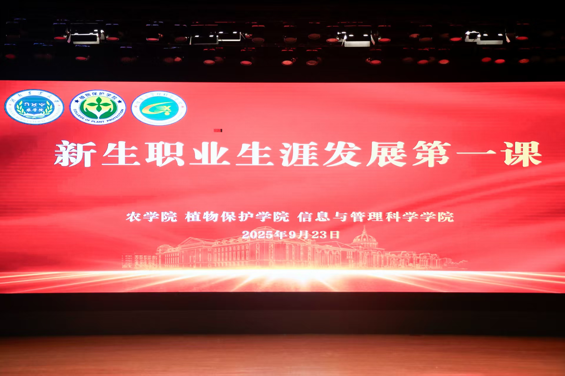 本网讯(通讯员 杨含笑 图 王奕博)为引导2025级新生树立科学职业发展观念、明确未来发展方向,9月22日下午,我院联合植物保护学院、信息与管理科学学院于文化路校区大礼堂举办新生职业生涯发展第一课活动。我院新生辅导员唐朝,植物保护学院新生辅导员李晓辉,信息与管理科学学院新生辅导员李艳飞,及三个学院2025级学生参与此次活动,活动由唐朝主持。