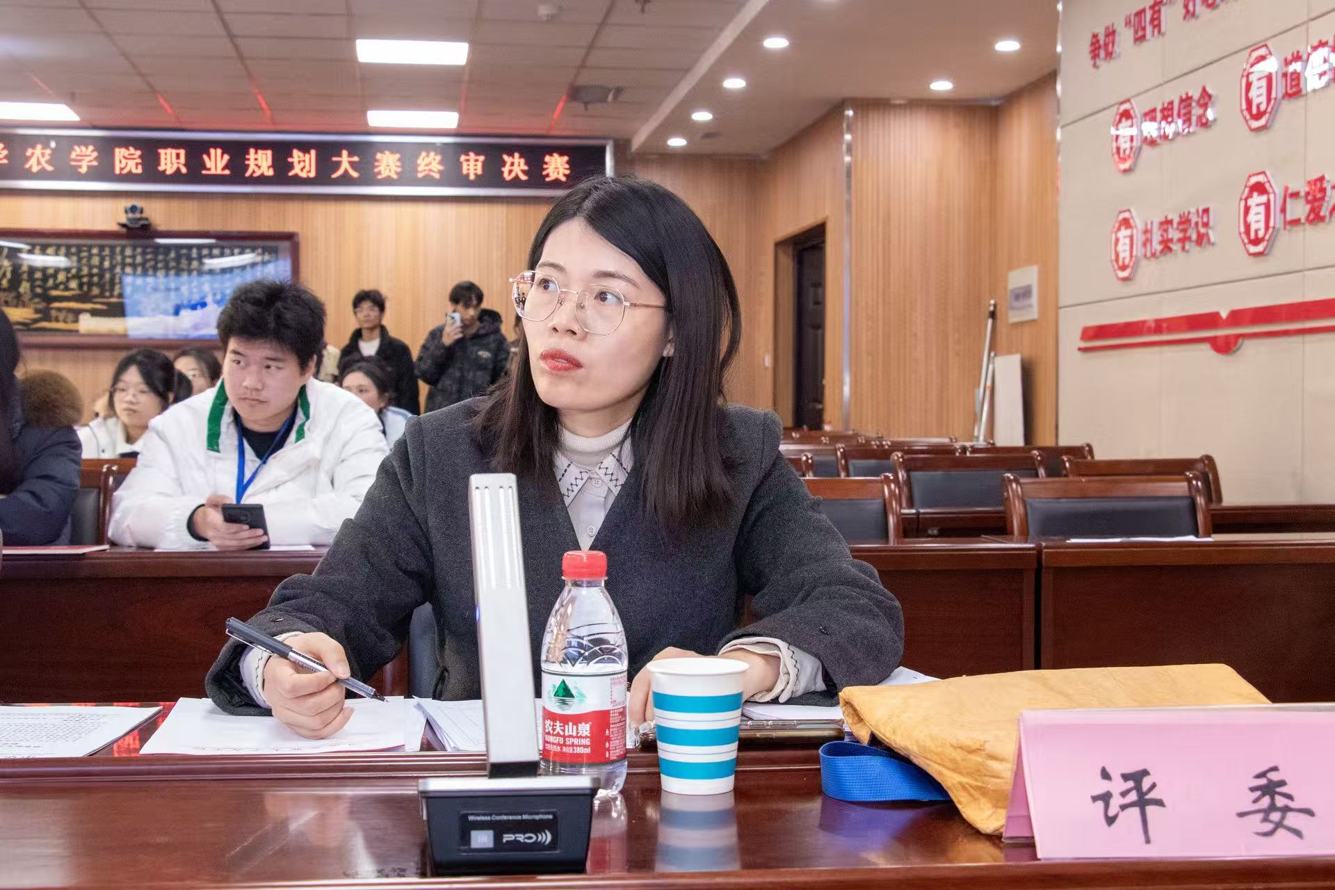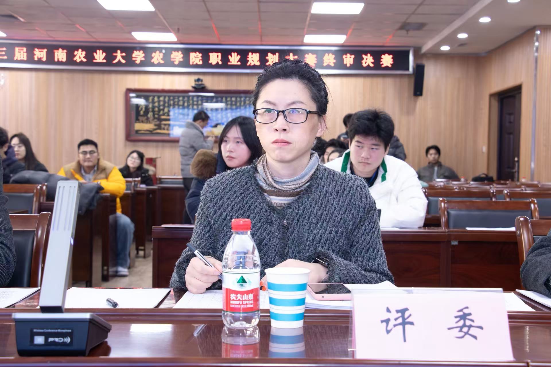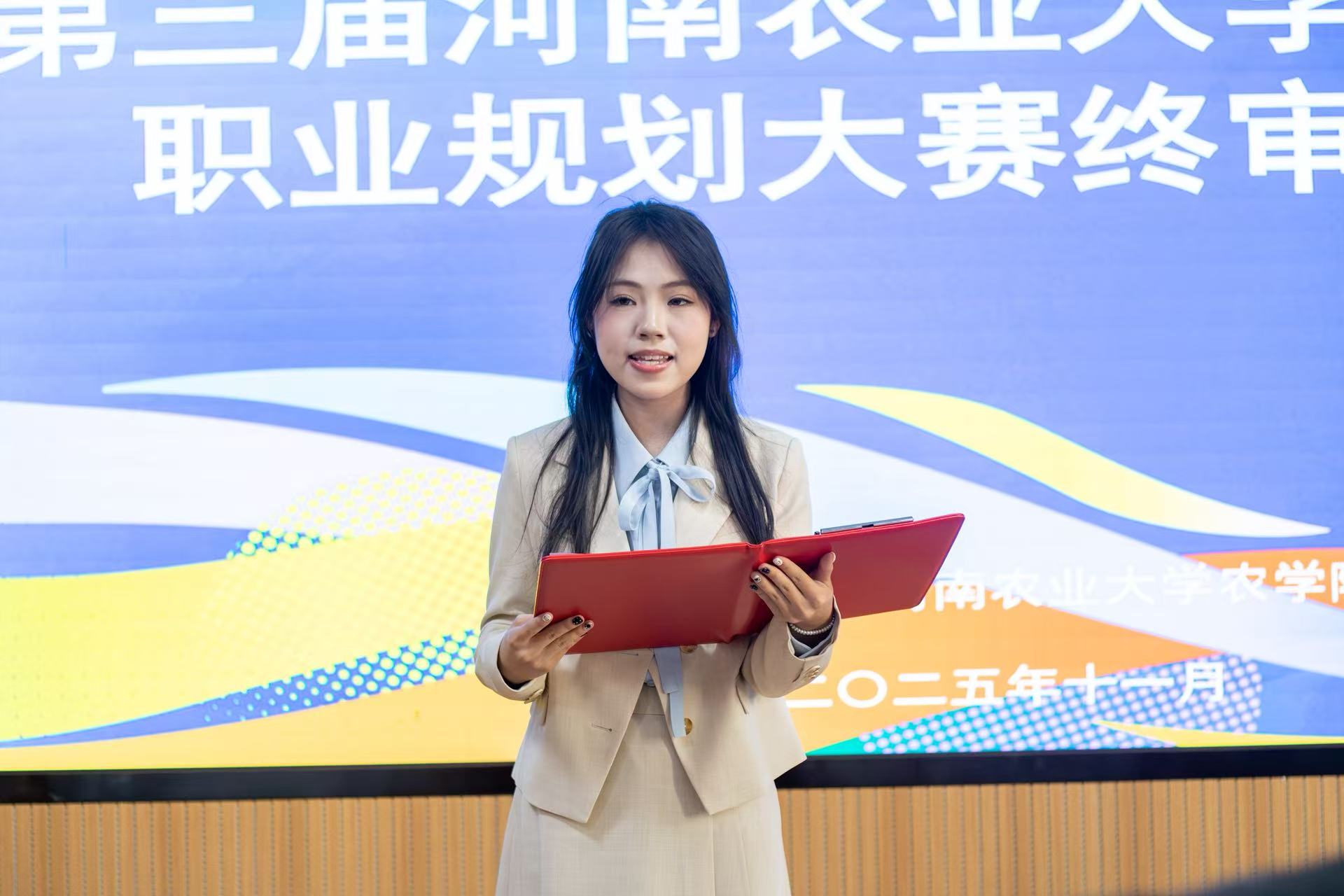 本网讯(通讯员 许洛菡 图 徐银浩 牛浩然 张卓 王奕博)为强化学生职业规划意识,提升就业竞争力与创新创业能力,11月18日我院于龙子湖校区举办第三届职业规划大赛。院党委书记副书记王金铎、招⽣就业办公室李碧莹、院团委副书记唐朝、往届省赛金奖获得者胡心如担任评委,河南豫之星作物保护有限公司人事经理赫全红莅临本次比赛,23、24级学生代表现场观摩比赛。比赛由学生代表刘潇方主持。