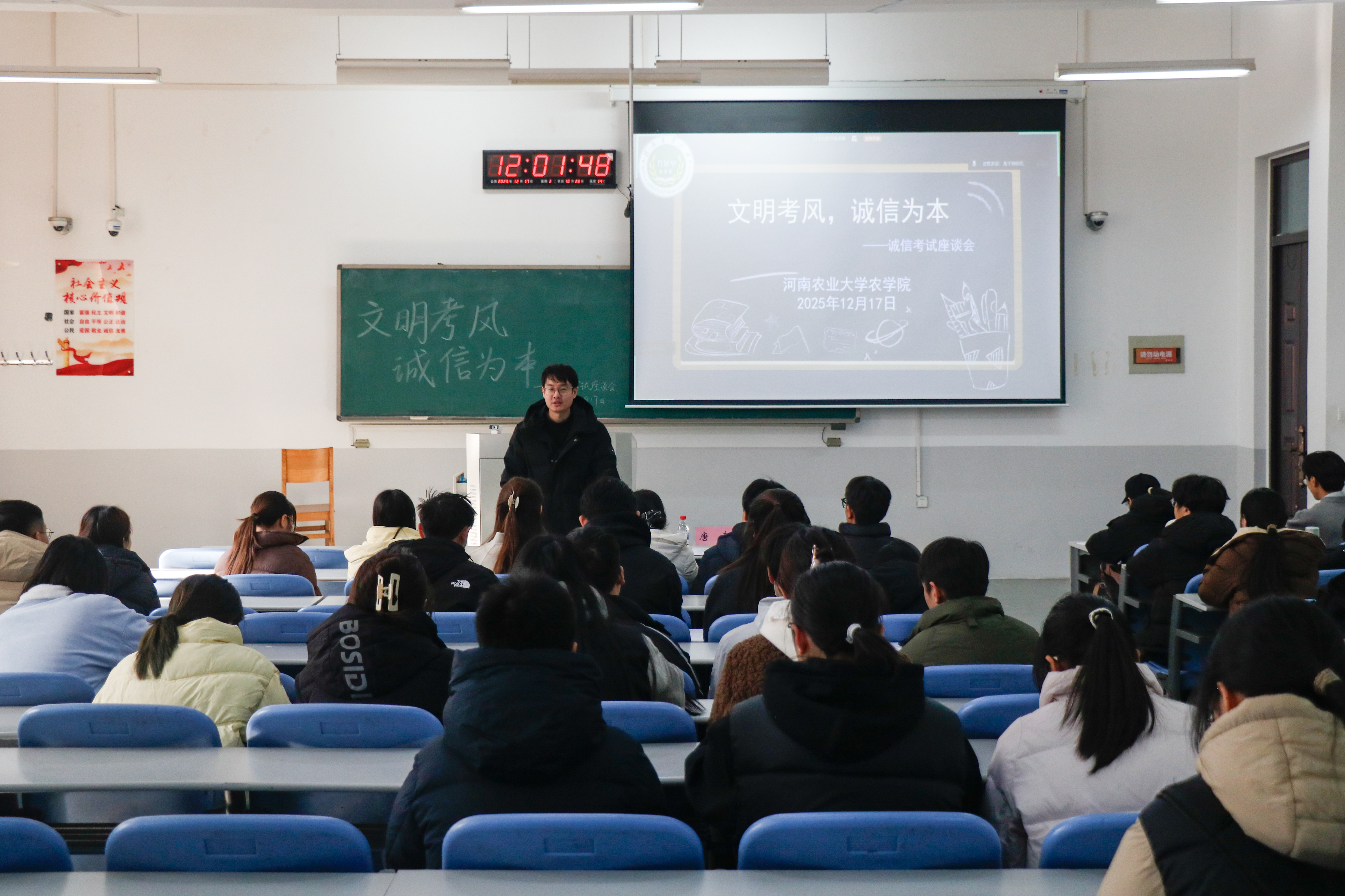 12月17日,龙子湖校区诚信教育考试动员大会在繁塔楼C102教室召开,院团委副书记唐朝出席会议并作动员讲话。他围绕诚信考试的核心重要性,结合学业预警管理要求与学生就业发展前景深入讲解,明确考试作弊将导致成绩无效,相关违纪情况纳入学业预警重点范围,严重影响正常学业进度。同时着重强调,作弊所受纪律处分将记入个人档案,对后续求职应聘、报考及职场长远发展产生负面连锁反应,大幅削弱就业核心竞争力。他勉励学生科学规划复习时间,精准查漏补缺,以饱满昂扬的状态全力以赴认真备考,坚守诚信准则、从容应考,凭借真实学识与过硬实力斩获优异成绩,不负时光、不负韶华。