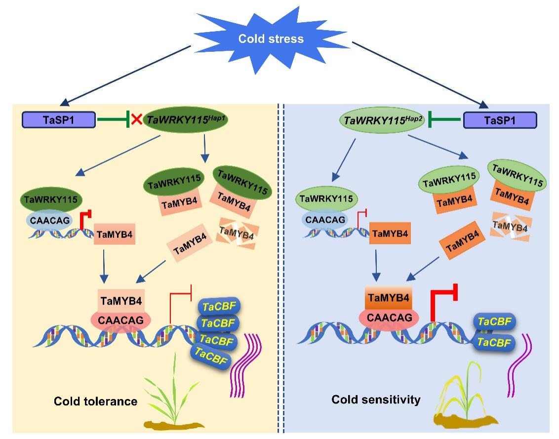 基于研究发现,提出了TaSP1-TaWRKY115-TaMYB4-TaCBF工作模型,为阐明小麦响应低温的分子机制提供重要参考信息。