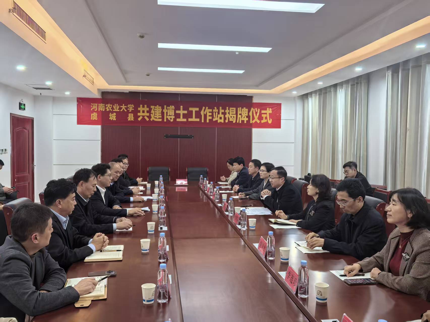 马菲简要介绍了学校的办学历程以及近年来学科建设、人才培养、科技创新和校地合作等情况。他表示,学校高度重视校地合作工作,始终坚持以服务“三农”为己任,以科技兴农、人才强农为使命。下一步,学校将以博士工作站为依托,选派专家团队,聚焦虞城特色产业,在技术研发、成果转化、示范推广和人才培养四个方面精准发力,共同探索现代农业高质量发展的新路径。