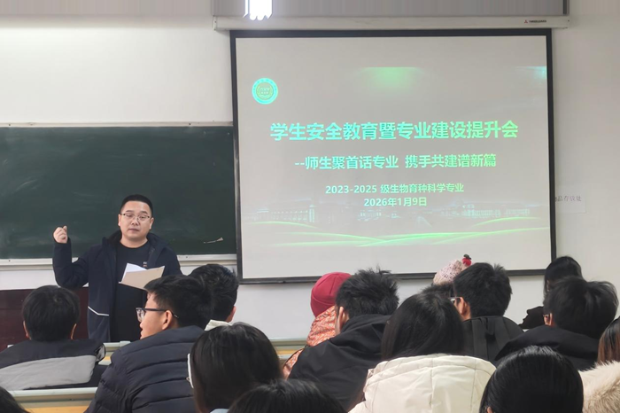 为深入贯彻校、院安全教育精神、提升专业建设内涵,助力作物学一流学科创建,我院生物育种科学系2026年1月9日围绕“学生安全教育与专业建设提升”分级开展2023-2025级生物育种科学专业本科生交流会。系室支部成员、系主任、班主任全员参加交流会,会议由巩方平副主任主持。