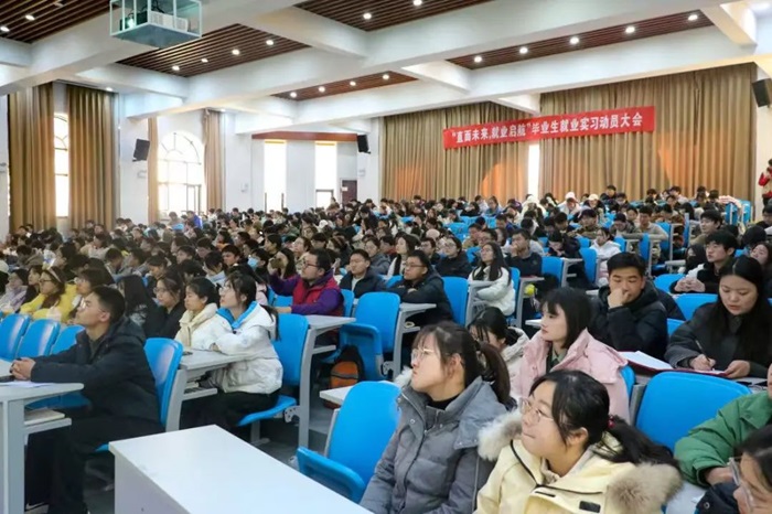 本网讯(通讯员 郭玉彩 图 王瑞琦)为确保2025届毕业生岗位实习工作的顺利进行,提升学生的实践能力和职业素养,促进学生高质量就业。12月23日上午,我院于繁塔楼AB间四楼大教室二举办“直面未来,就业启航”毕业生就业实习动员大会。学院党委副书记方芳、副院长李浩川、牧原集团招聘经理苏梦、中国知网河南分公司市场经理李燕萍,以及学院团委、院办相关负责老师,优秀校友代表、全体2025届本科生、研究生毕业生参加会议。会议由正科级组织员李盼主持。