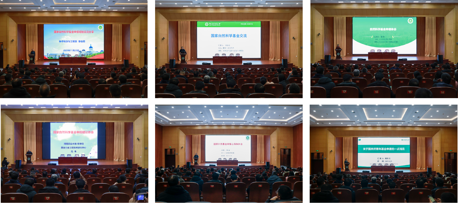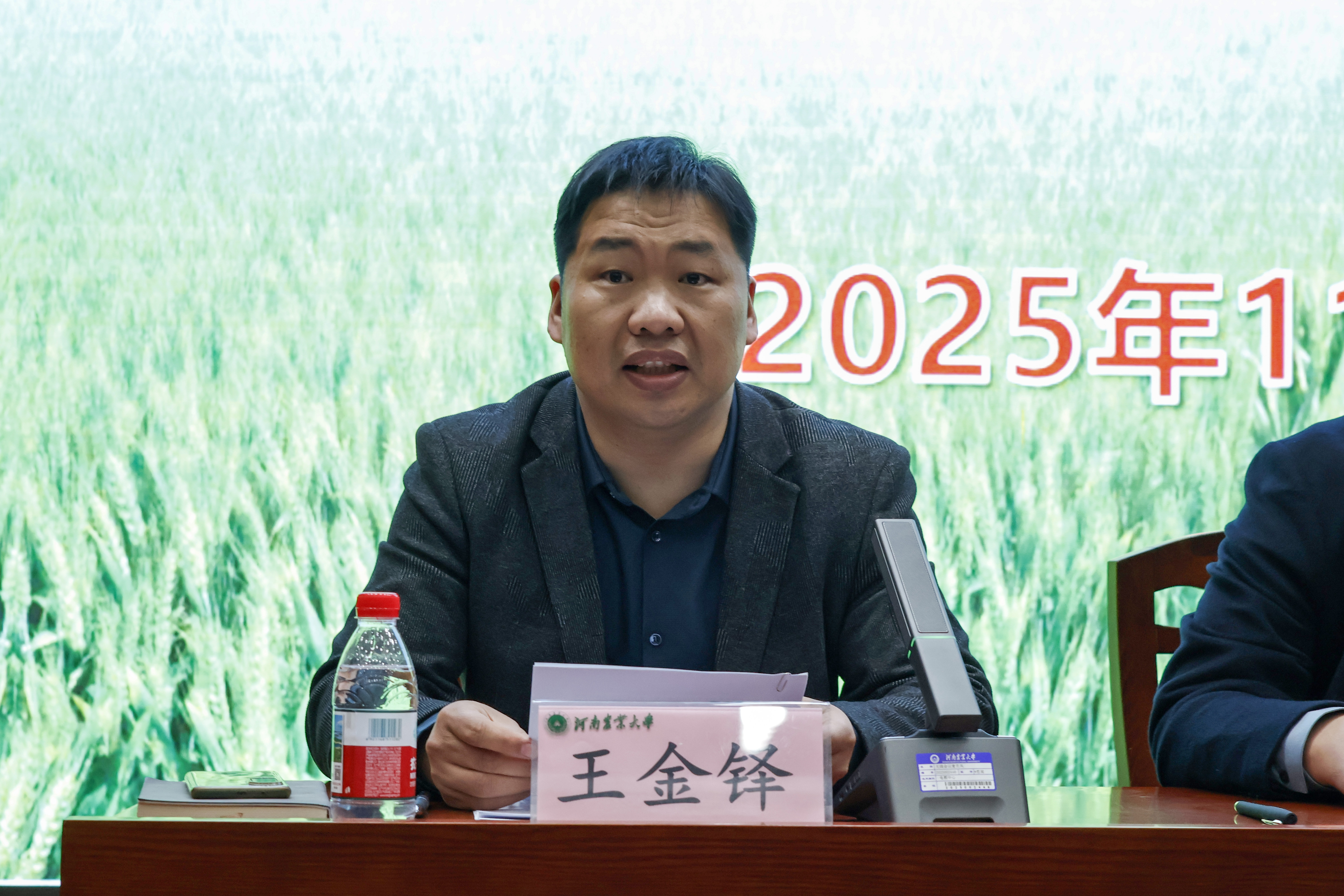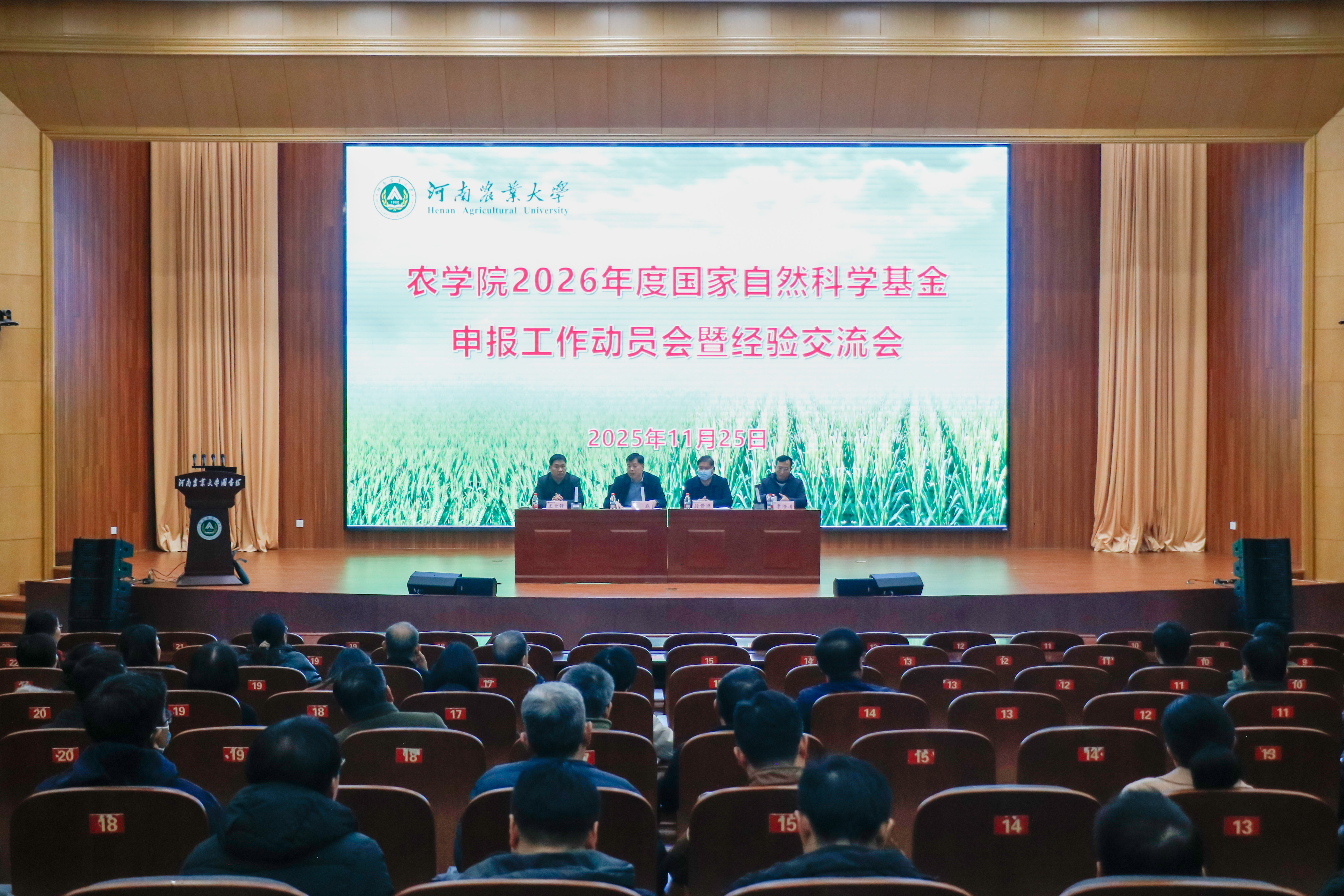 本网讯(通讯员 彭廷 图 王奕博 赵雪 翟洹璈)2025年11月25日下午,“农学院2026年度国家自然科学基金申报工作动员会暨经验交流会”在我校龙子湖校区图书馆报告厅顺利召开。院党委书记贾磊,国家小麦技术创新中心(筹)执行主任、副院长殷贵鸿,院党委副书记、纪委书记王金铎,副院长李浩川等学院领导班子成员,农学院、国麦中心全体教职工参加会议。会议由王金铎主持。
