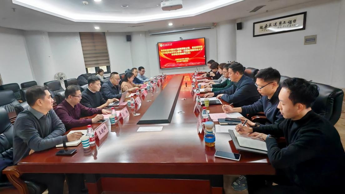 2025年11月26日,中国出口信用保险公司战略客户一部副总经理庄以群、农业农村部对外经济合作中心首席科学家秦路等一行到河南农业大学农学院,就智慧农业与农业国际化问题进行调研交流。学校国际合作处副处长曾效葵、农学院院长陈锋、副院长赵建一、智慧农业系负责人熊淑萍教授及相关老师参加会议。会议由农学院副院长赵建一主持。