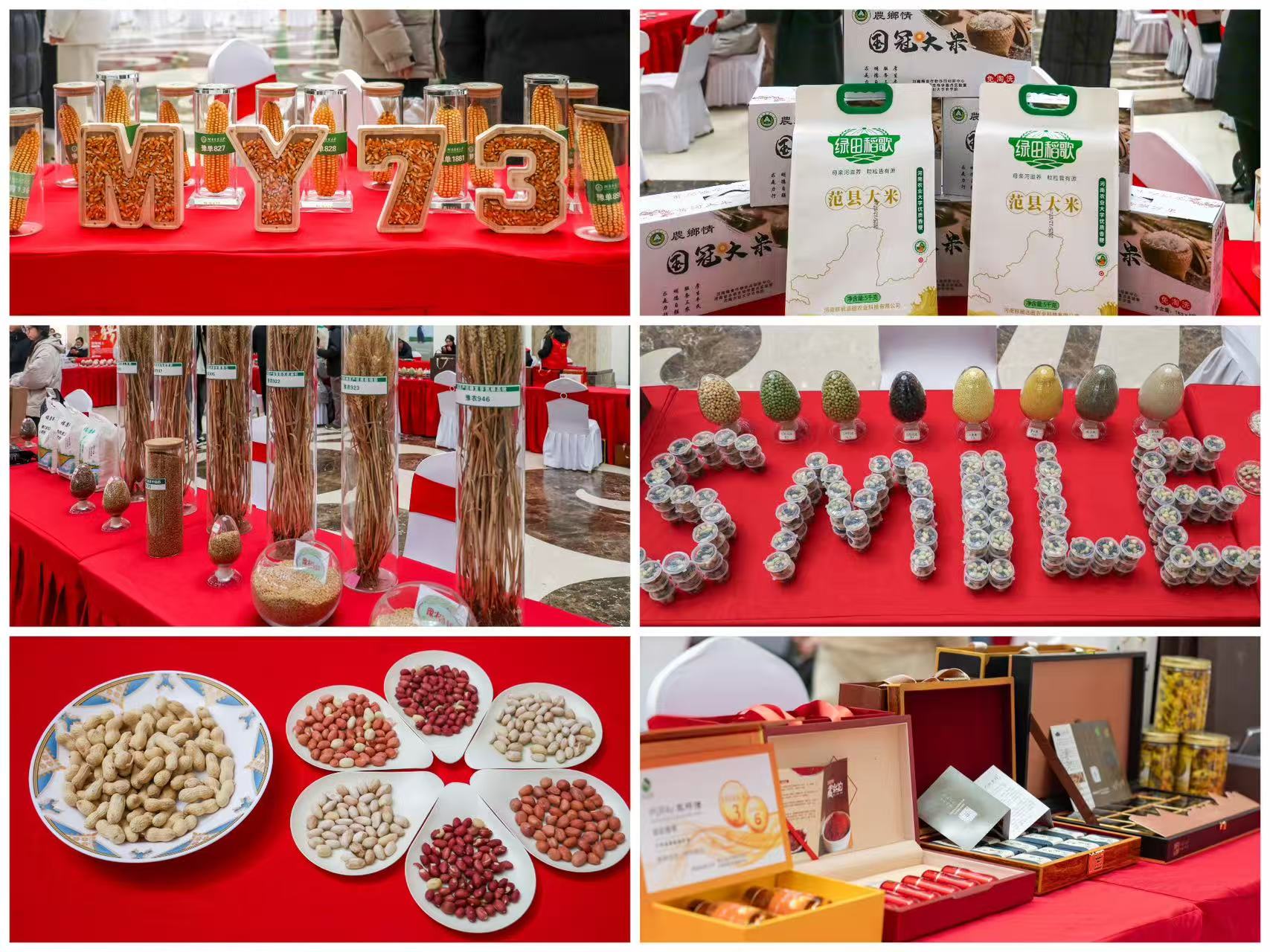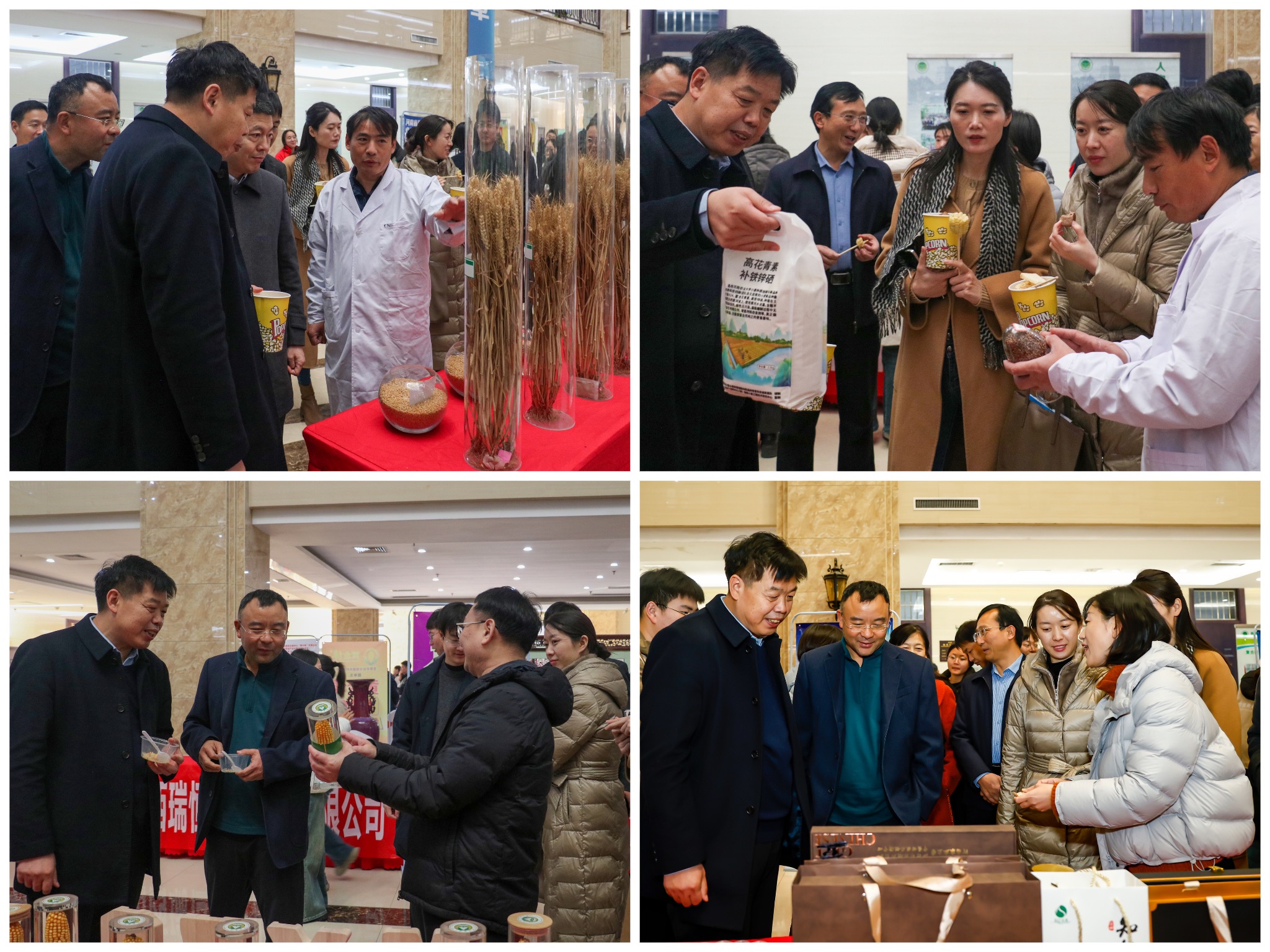 在科技成果发布环节,唐建卫、张战辉、孙红正、巩方平、李连珍、熊二辉等教师分别介绍了我院小麦、玉米、水稻、花生、中药、大豆等领域的最新研究进展与品种创新。饱满的麦穗、金黄的玉米、优质的水稻和花生等实物展示,吸引了师生驻足观看、品尝试饮,现场气氛热烈。
