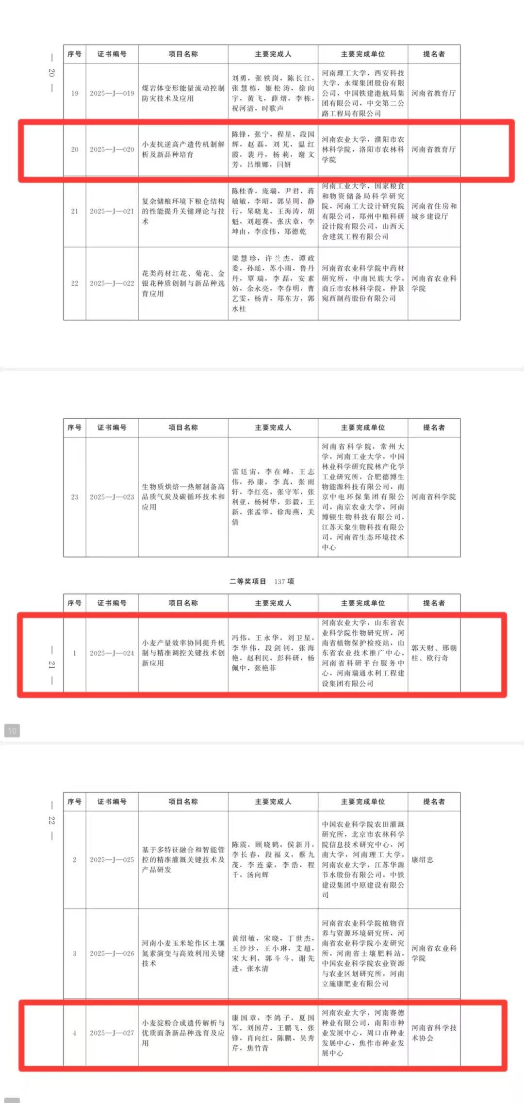 本网讯(通讯员 秦仪雯)近日,河南省人民政府发布了《关于2025年度河南省科学技术奖励的决定》,我院陈锋教授团队荣获河南省科学技术进步奖一等奖,冯伟研究员团队、康国章研究员团队荣获河南省科学技术进步奖二等奖,彰显了我院在小麦科学研究领域的雄厚实力与突出贡献。