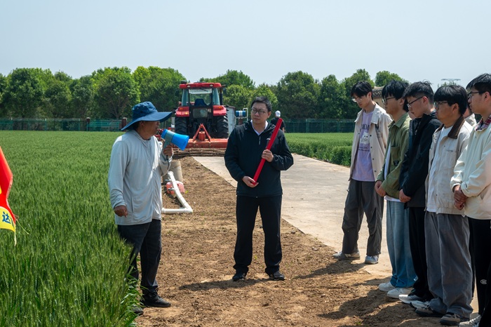 第二站前往河南金苑种业小麦育种繁殖田。依托完善的商业化育种体系,企业科研人员现场讲解小麦种质资源筛选、亲本选配、田间性状鉴定、良种繁育栽培等关键育种环节,分享小麦新品种选育思路、区域试验流程与推广应用模式。置身繁育试验田间,学生直观了解小麦育种从科研试验到大田繁育的全过程,切实体会种业科研工作的长期性、严谨性与专业性。