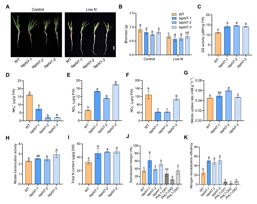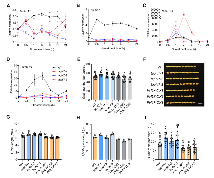 图5:TaPHL7调控的氮磷利用调节籽粒产量